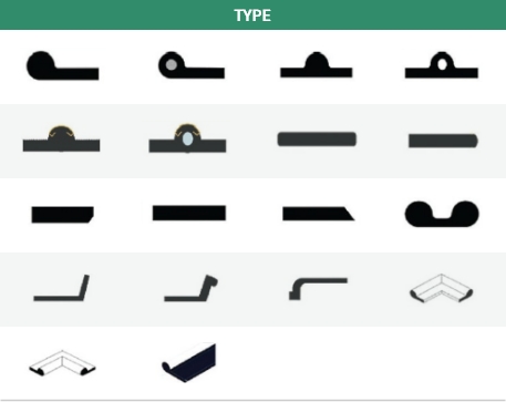 * P type rubber : It is usually used for gate packing and it is widely applied to refrigerator and heating cabinet